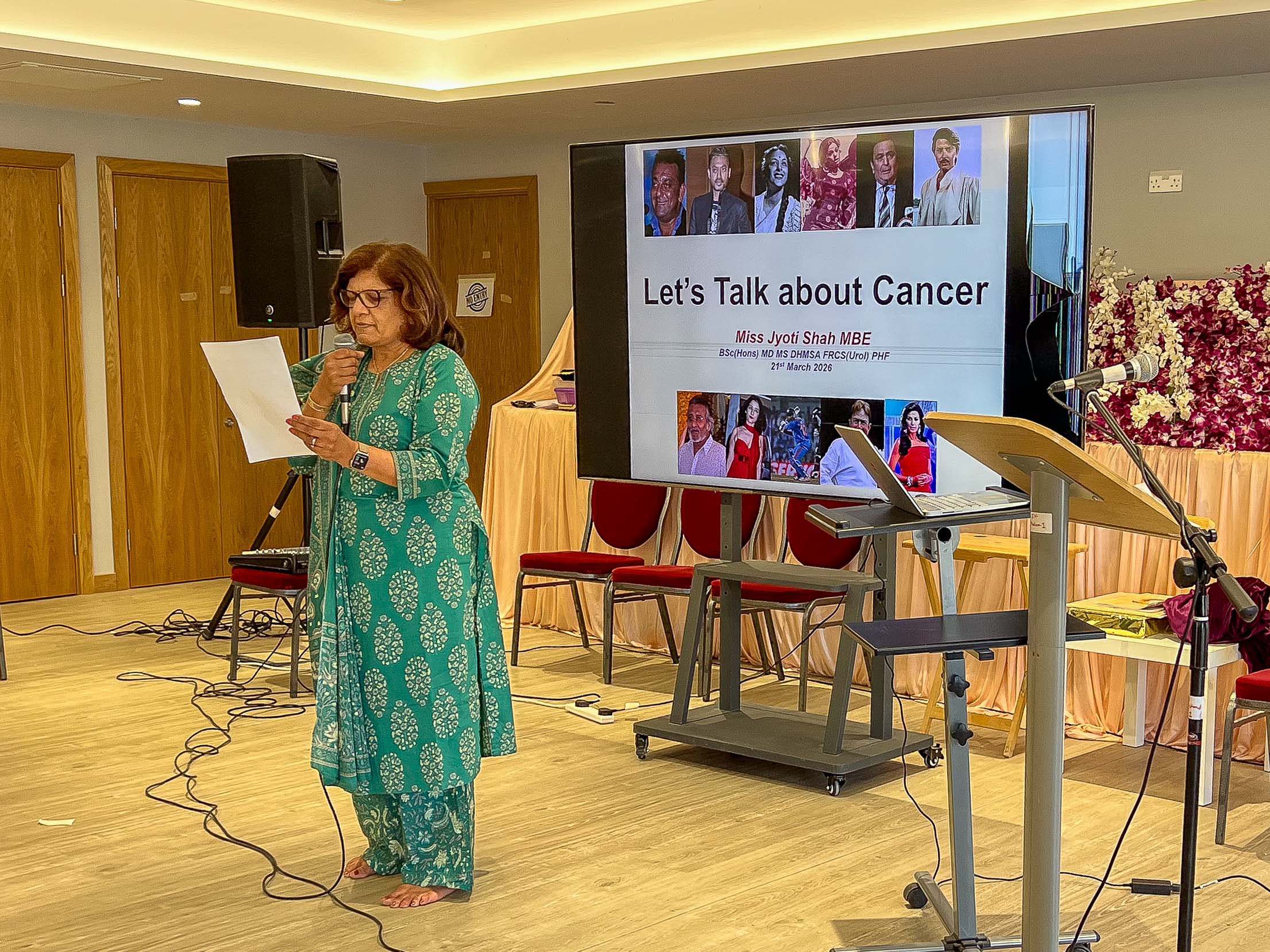 Consultant Urological Surgeon Miss Jyoti Shah MBE delivered an inspiring educational talk titled “Let’s Talk About Cancer” at the Jain Centre in London on 26 March 2026. The event, aimed at breaking community taboos and promoting early diagnosis, drew a significant audience eager to learn about health and prevention.