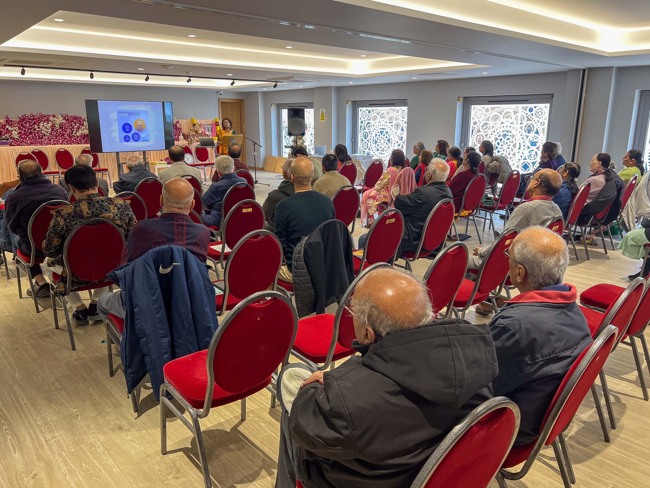 Miss Shah, widely known for her work with fightingprostatecancer.co.uk, has a long-standing history of health advocacy within the Jain community. During her presentation, she addressed the critical importance of recognizing early warning signs and the lifesaving impact of regular screenings. By sharing expert insights in a simple and relatable manner, she encouraged attendees to prioritize their wellbeing and engage in open conversations about cancer.